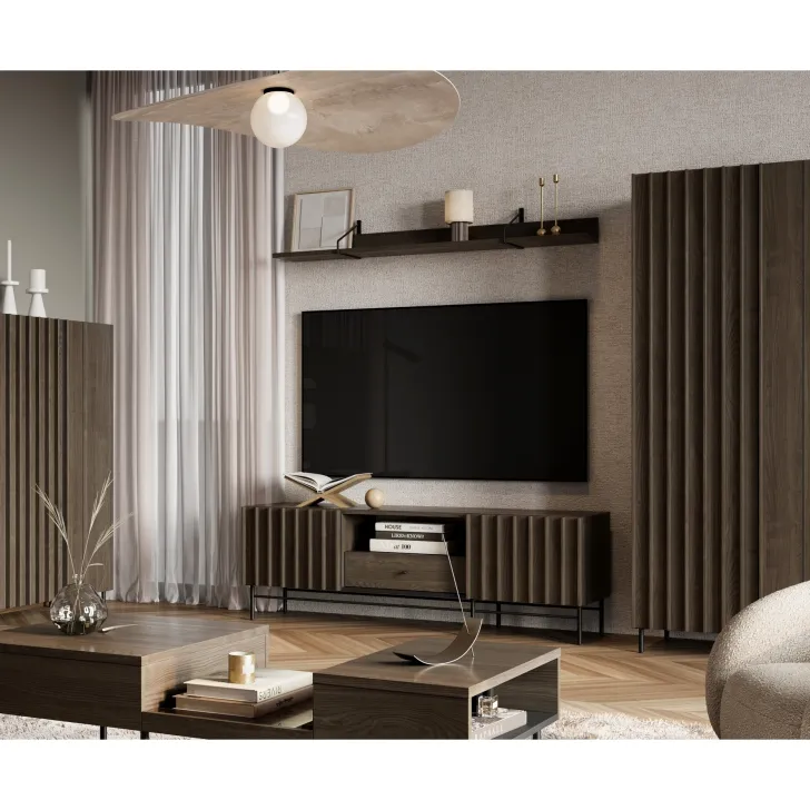 Szafka RTV z kolekcji Impera 165 cm to doskonałe połączenie nowoczesności i funkcjonalności, które przyciąga uwagę swoim stylowym wyglądem oraz praktyczną konstrukcją. Jej wyrazisty i elegancki design, czyni ją nie tylko praktycznym meblem, ale również wyróżniającym się elementem wystroju wnętrza.