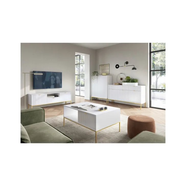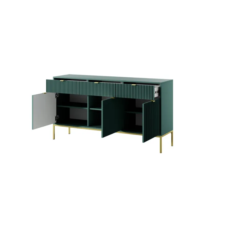 Zaprezentuj swój dom w najlepszym świetle dzięki nowoczesnej, wyrafinowanej i eleganckiej komodzie "NOVA" na metalowych nogach. Idealna do pokoju lub salonu, niezależnie od stylu wnętrza, ta komoda z drzwiami i szufladami najwyższej jakości łączy funkcjonalność z wyróżniającym się stylem.