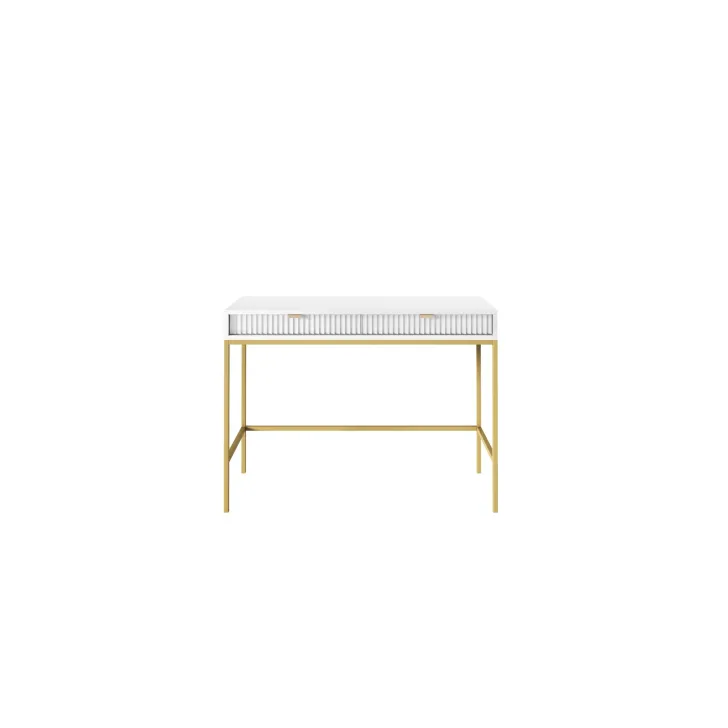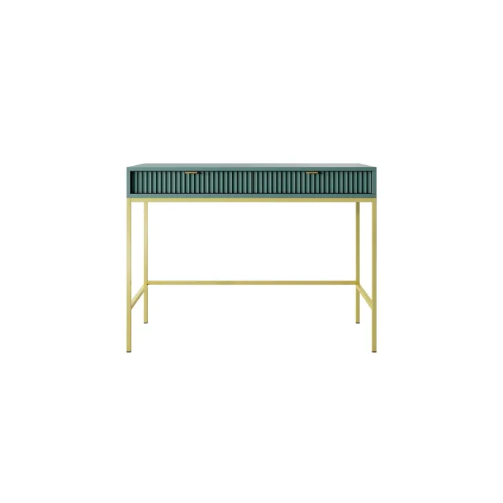 Odkryj fascynującą toaletkę NOVA, doskonałym połączeniem style, funkcjonalności i wytrzymałości. Te nowoczesne meble mogą z łatwością przekształcić się ze stylizowanej toaletki do funkcjonalnego biurka, co czyni je idealnym rozwiązaniem zarówno do sypialni, jak i biura. Jest to uniwersalny mebel, który może dostosować swój wygląd do twoich gustów i potrzeb. Dzięki możliwości personalizacji klamek i koloru nóg, toaletka NOVA pozwoli wyrazić swój unikalny styl. Wybierz spośród pięciu kolorów (biały, szary, czarny, zielony) jedną z dwóch opcji kolorów nóg (czarny, złoty) oraz dwóch kolorów klamek (złoty, czarny). Do produkcji toaletki NOVA użyto tylko solidnych materiałów, takich jak: